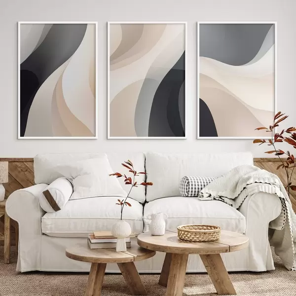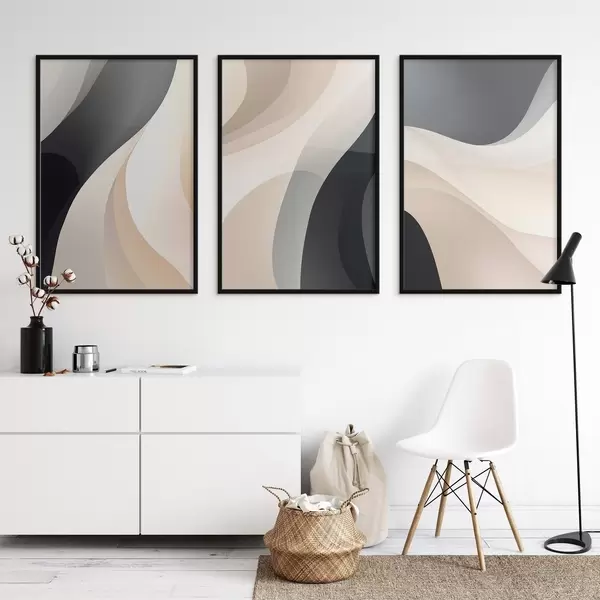 Poster Minimale vloeiende rondingen in crème, taupe en zwart N° d00962