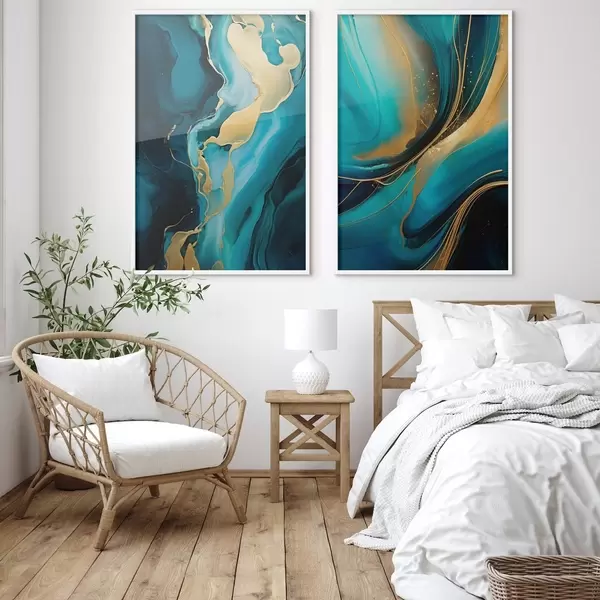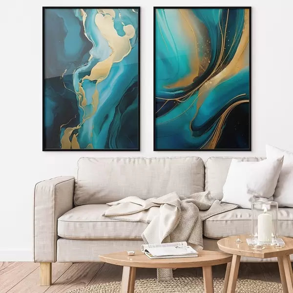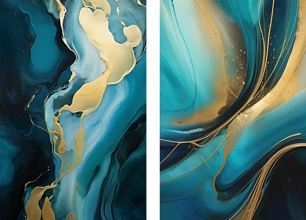 Poster Teal vloeibaar abstract met warme metallic stromen N° d00965