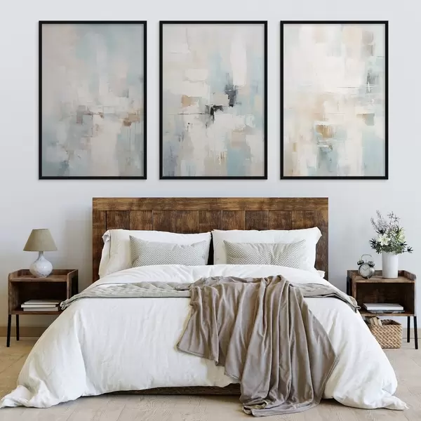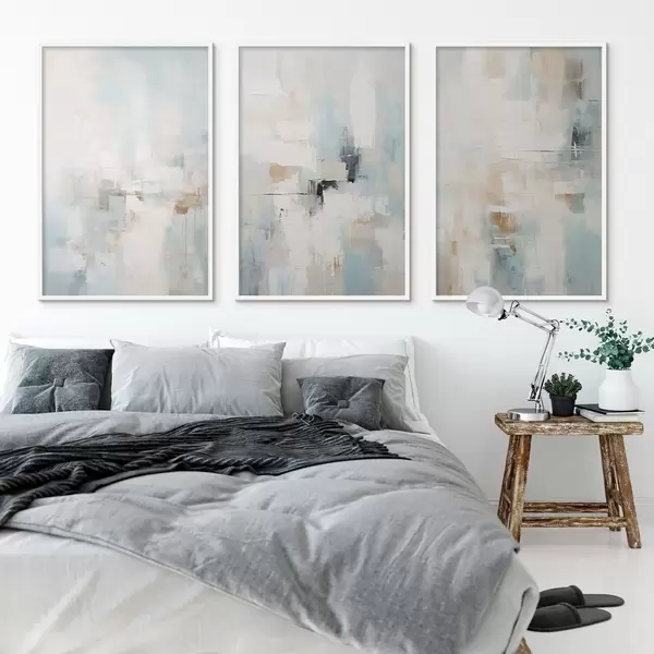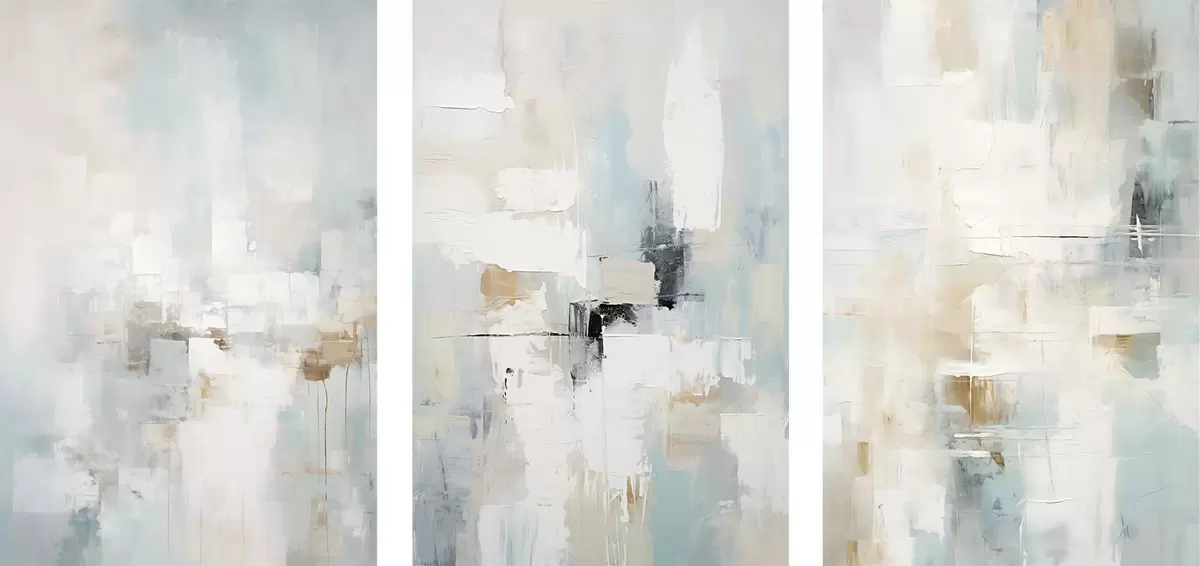 Poster Luchtig abstract kleurenpalet: wit, beige en lichtblauw N° d00966