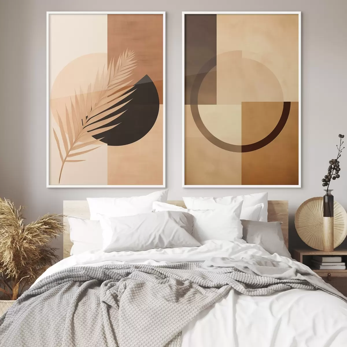 Poster Terracotta en beige geometrische vorm met palmbladmotief N° d00968