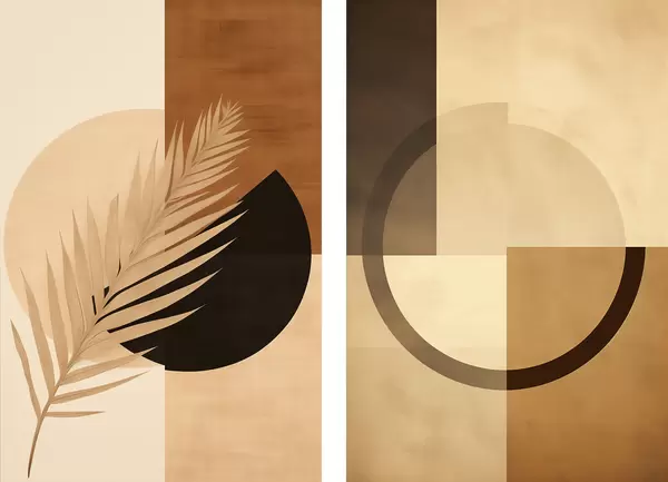 Poster Terracotta en beige geometrische vorm met palmbladmotief d00968