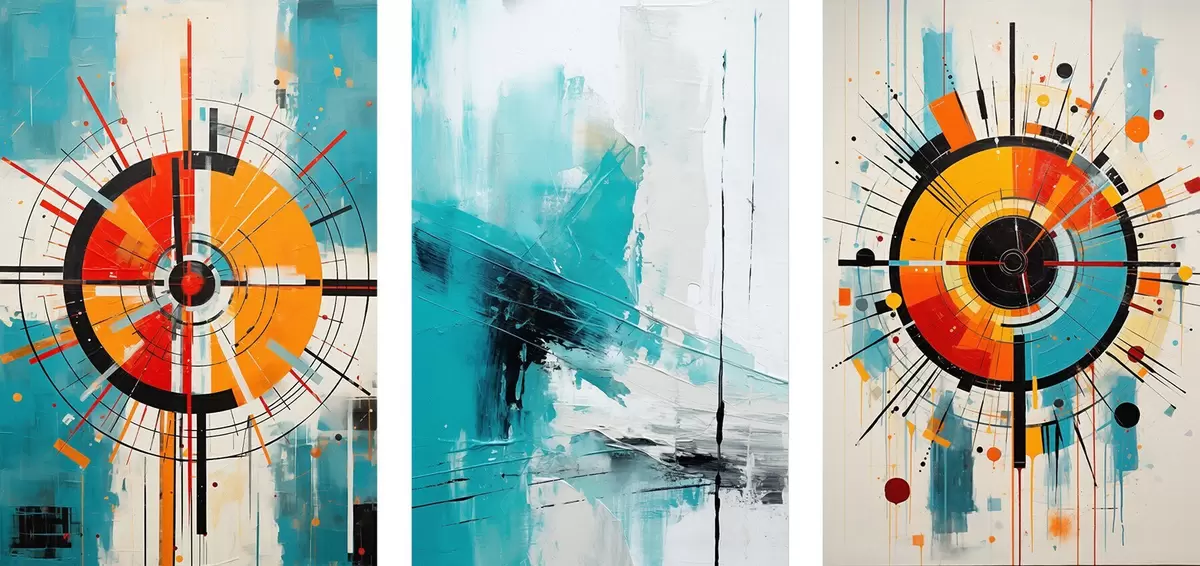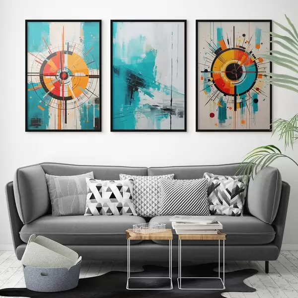 Poster Radiaal abstract met blauwgroene en oranje uitbarstingen N° d00973