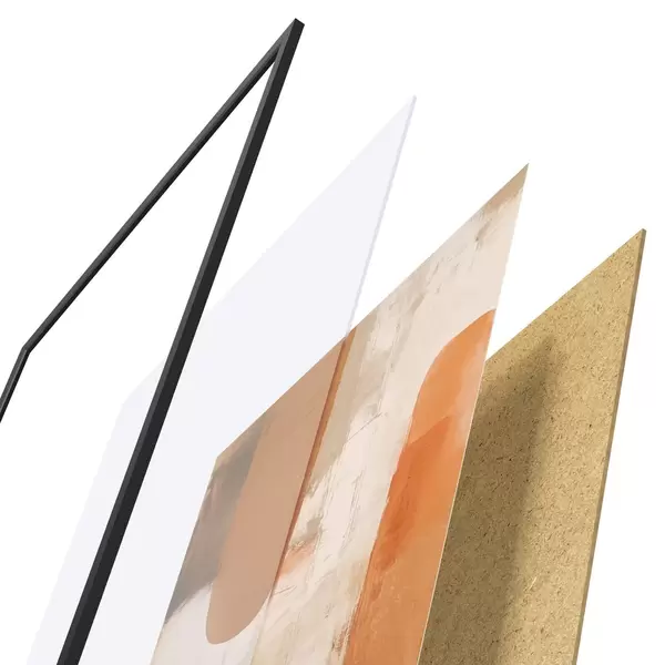 De poster bestaat uit een frame, plexiglas, geprinte afbeelding en spaanplaat achterkant. De poster kan meteen aan de muur worden gehangen dankzij de bevestigingen op de achterkant.