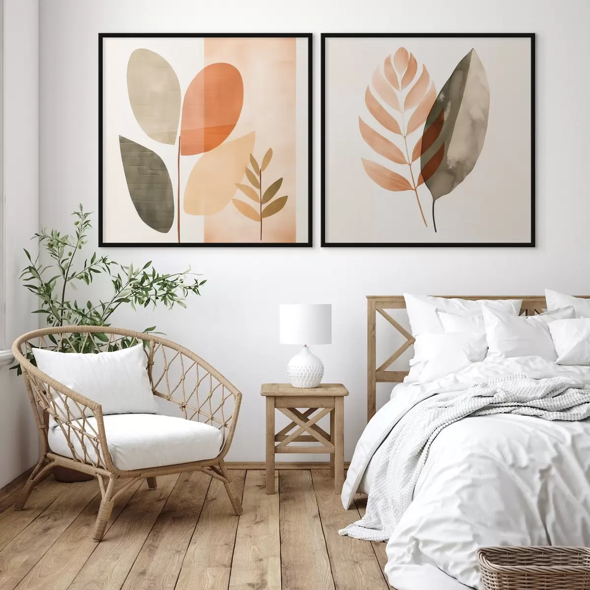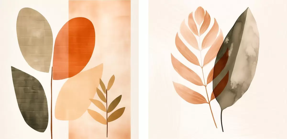 Poster Tweeluik met botanische motieven in een pastelkleurig palet N° d00983