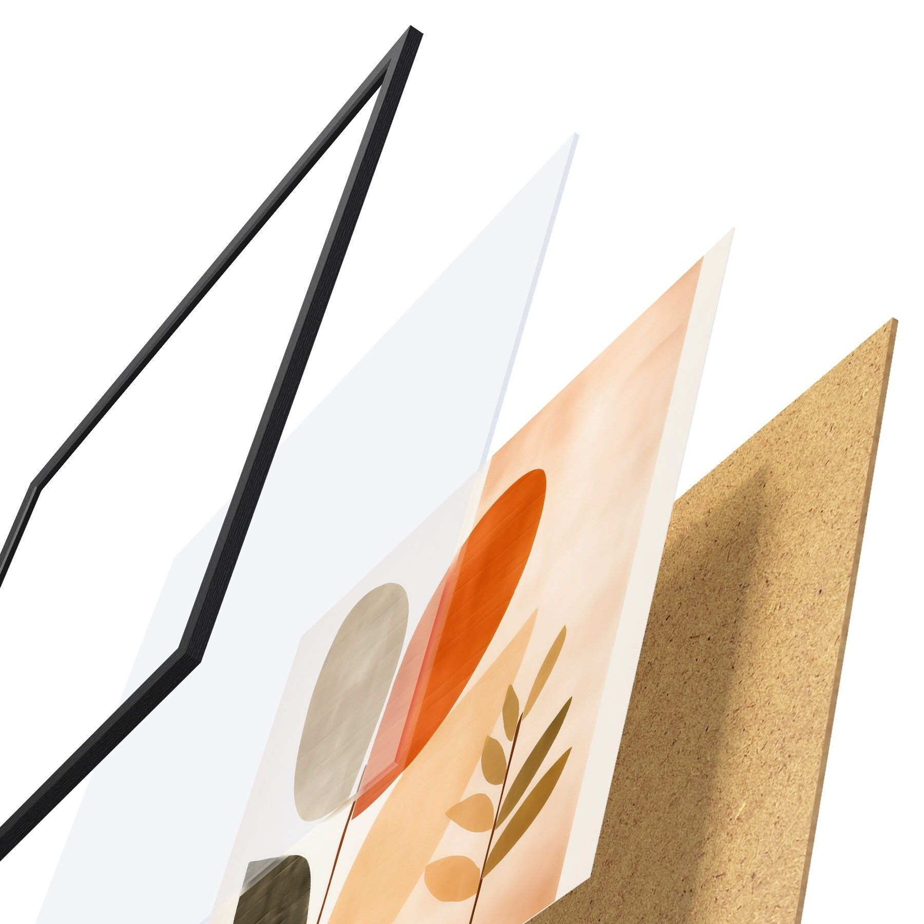 De poster bestaat uit een frame, plexiglas, geprinte afbeelding en spaanplaat achterkant. De poster kan meteen aan de muur worden gehangen dankzij de bevestigingen op de achterkant.