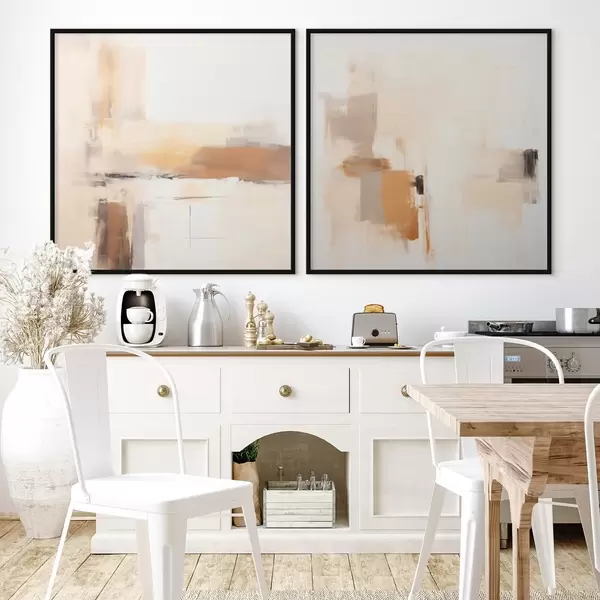 Poster Gestileerde abstractie met warme tinten in tweeluikformaat N° d00988