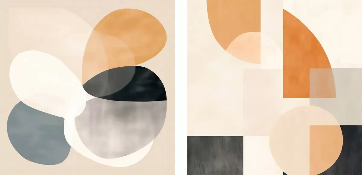 Poster Afgeronde kruispunten van vormen in aquarelminimalisme N° d00993