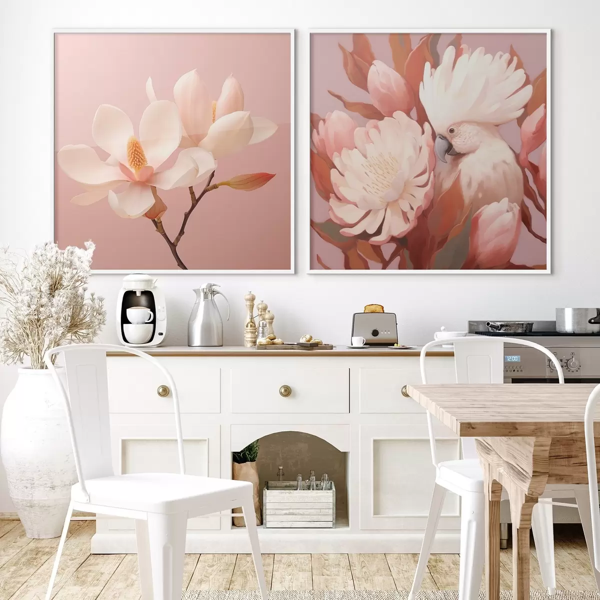 Poster Bloemstuk met een vogel in een artistieke illustratiestijl N° d00994