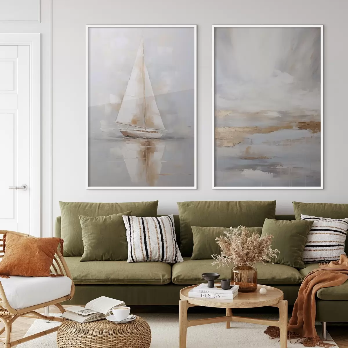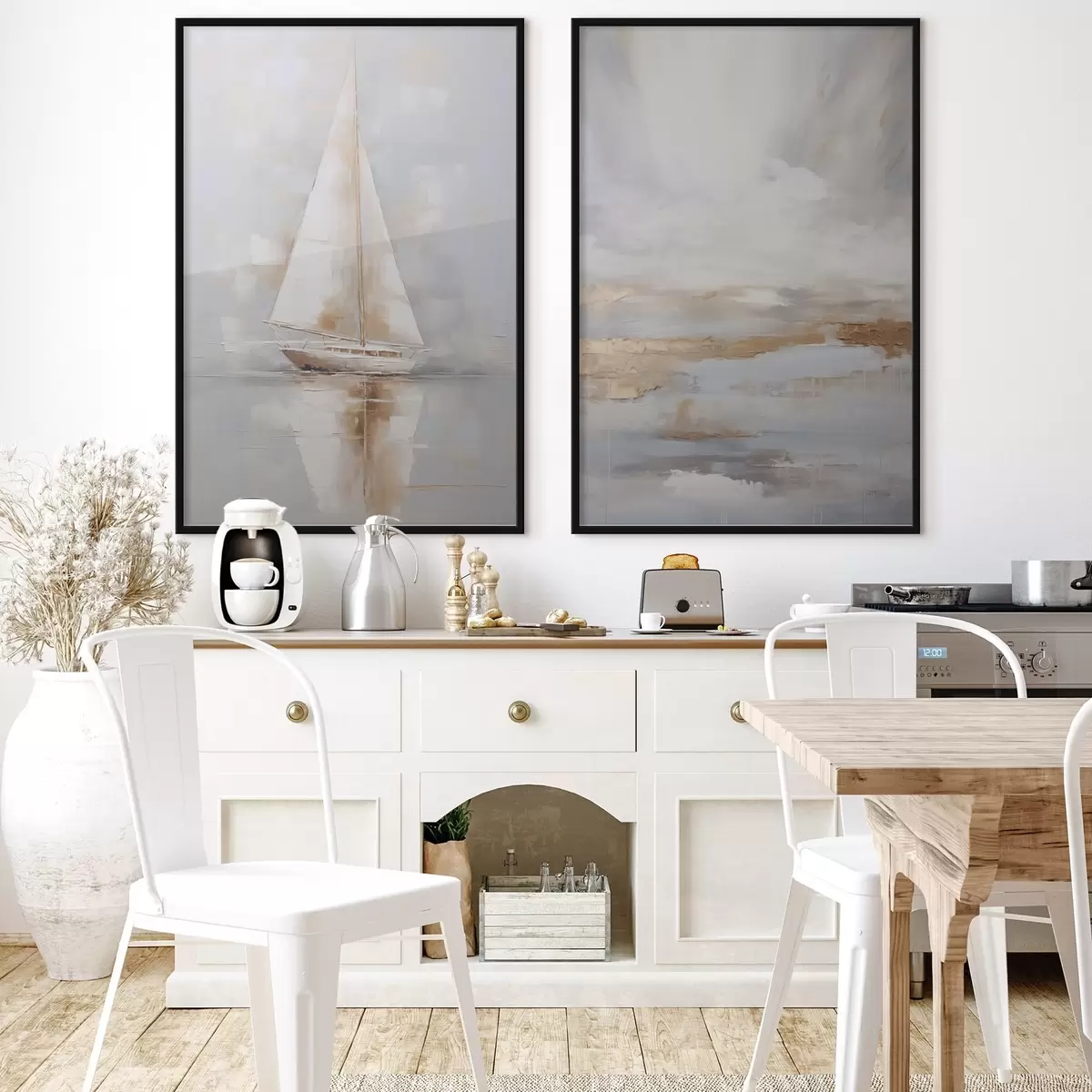 Poster Zeilboot en abstracte compositie imitatie van schilderij N° d00999