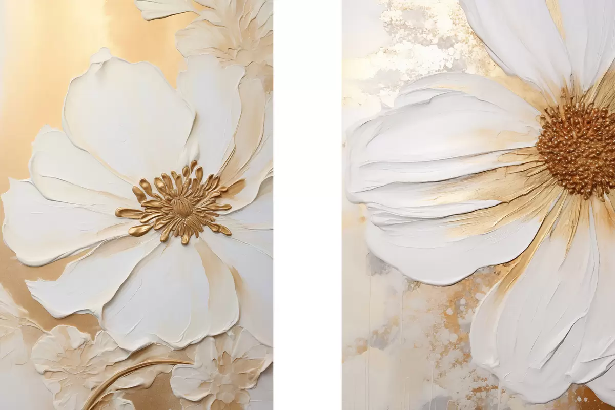 Poster Een witte bloem met delicate bloemblaadjes, een abstracte achtergrond met textuur, elegant, decoratieve kunst d01006