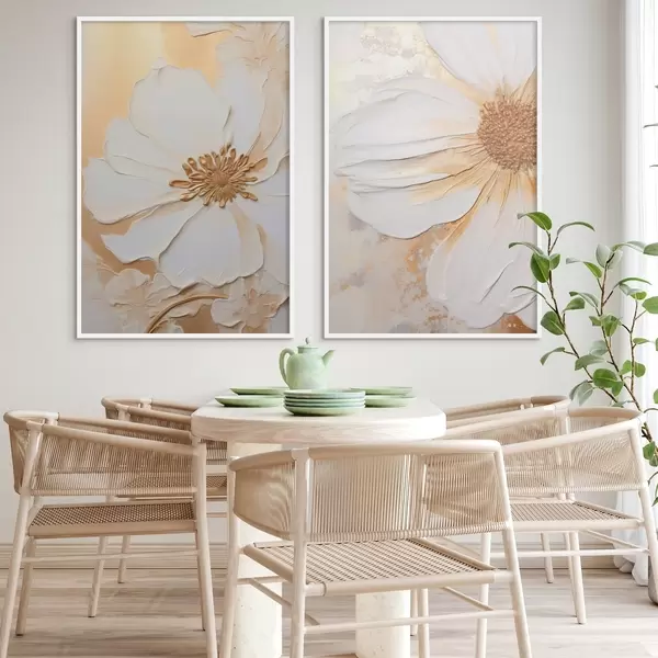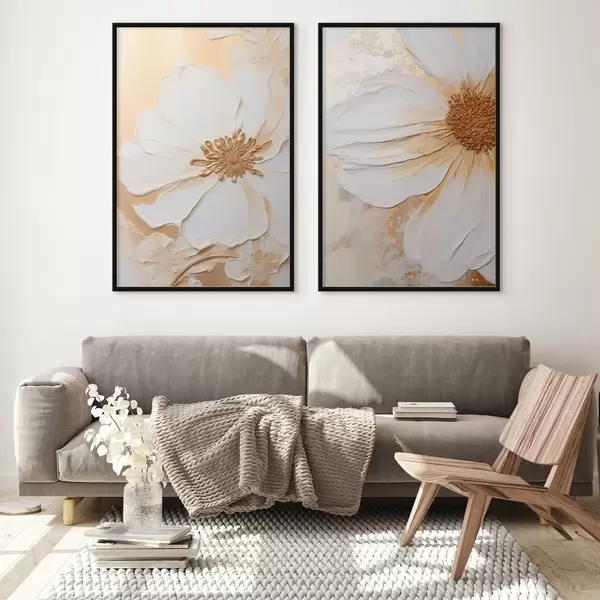 Poster Een witte bloem met delicate bloemblaadjes, een abstracte achtergrond met textuur, elegant, decoratieve kunst N° d01006