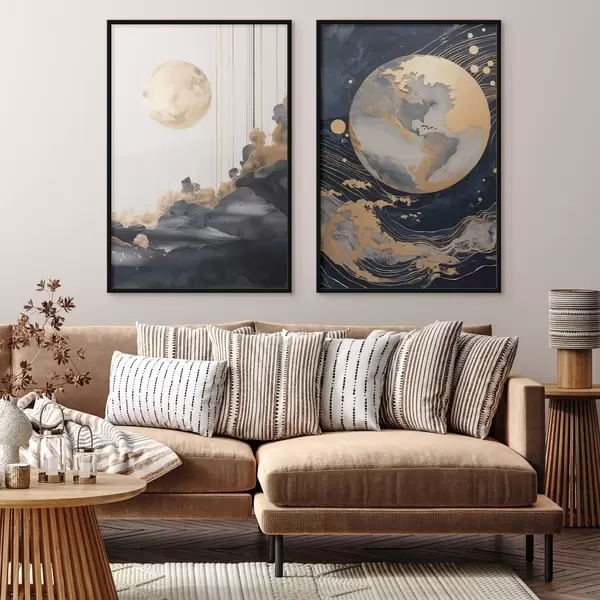 De poster bestaat uit een frame, plexiglas, geprinte afbeelding en spaanplaat achterkant. De poster kan meteen aan de muur worden gehangen dankzij de bevestigingen op de achterkant.