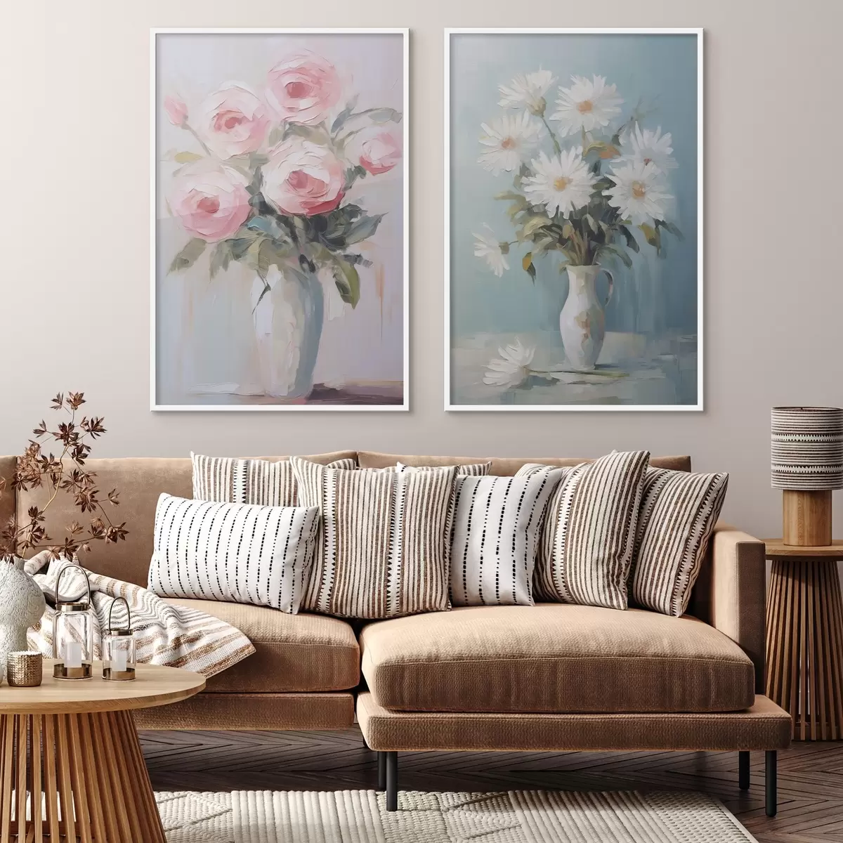 Je kunt het schilderij ophangen aan schroeven. Hiervoor leveren we bevestigingen bij onze foto's, zodat je de foto gemakkelijk kunt ophangen.