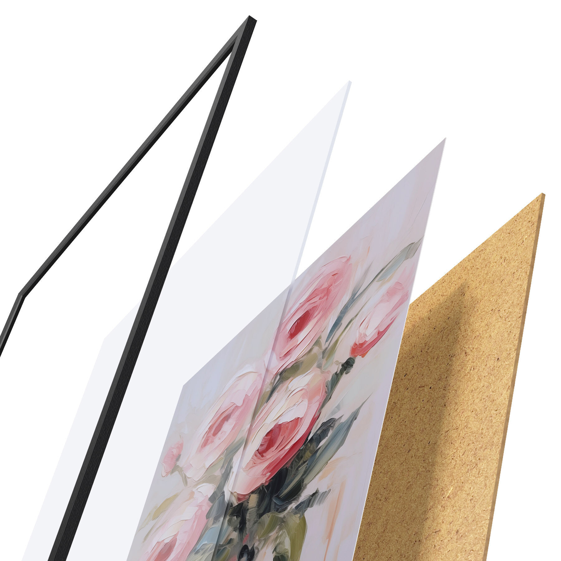 De poster bestaat uit een frame, plexiglas, geprinte afbeelding en spaanplaat achterkant. De poster kan meteen aan de muur worden gehangen dankzij de bevestigingen op de achterkant.
