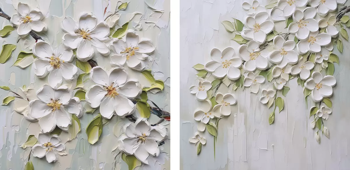 Er zijn drie soorten materiaal te bestellen: Economic Canvas - een dicht en duurzaam materiaal voor digitaal printen, identiek aan schildersdoek, waterdicht oppervlak, realistische weergave van details, materiaal met gemiddelde korrel. Premium Canvas - de textuur lijkt op die van schildersdoek (verweven kleine draden). Zachte, gedetailleerde reproductie van de afbeelding op een mat oppervlak. Eco-Premium - hoogwaardige 100% katoenen stof. Dankzij de natuurlijke katoenvezels is het materiaal duurzaam en slijtvast. Uitstekende kleurweergave en detail.