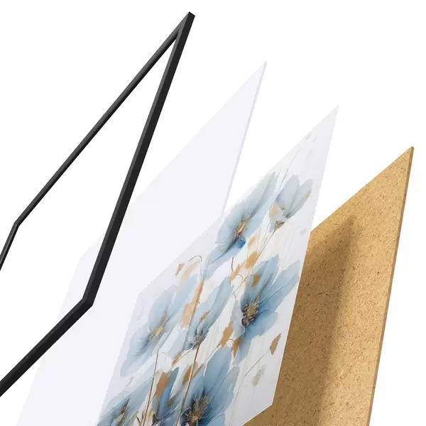 De poster bestaat uit een frame, plexiglas, geprinte afbeelding en spaanplaat achterkant. De poster kan meteen aan de muur worden gehangen dankzij de bevestigingen op de achterkant.