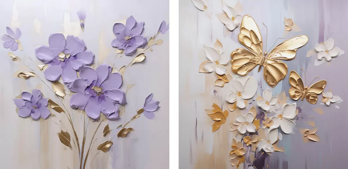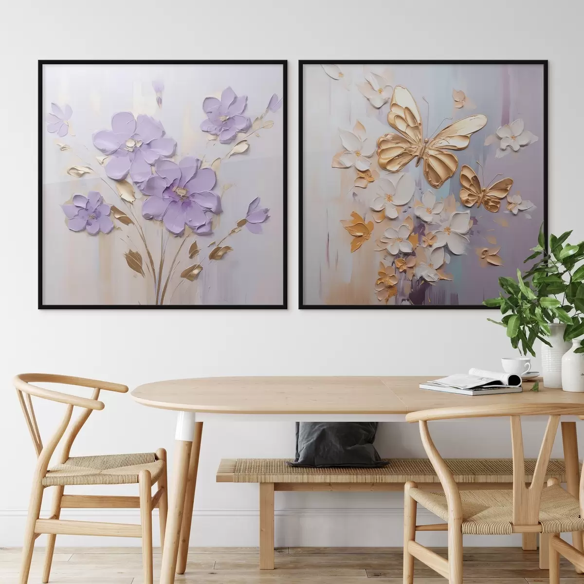 Poster Schilderij met imitatie van vlinders en bloemen N° d01046
