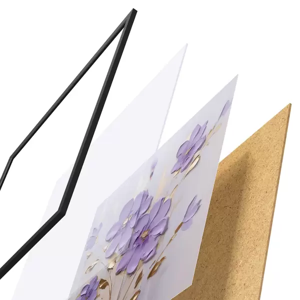 De poster bestaat uit een frame, plexiglas, geprinte afbeelding en spaanplaat achterkant. De poster kan meteen aan de muur worden gehangen dankzij de bevestigingen op de achterkant.