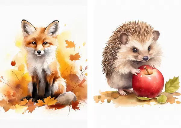 Poster Vos en egel, imitatie-aquarel d01050