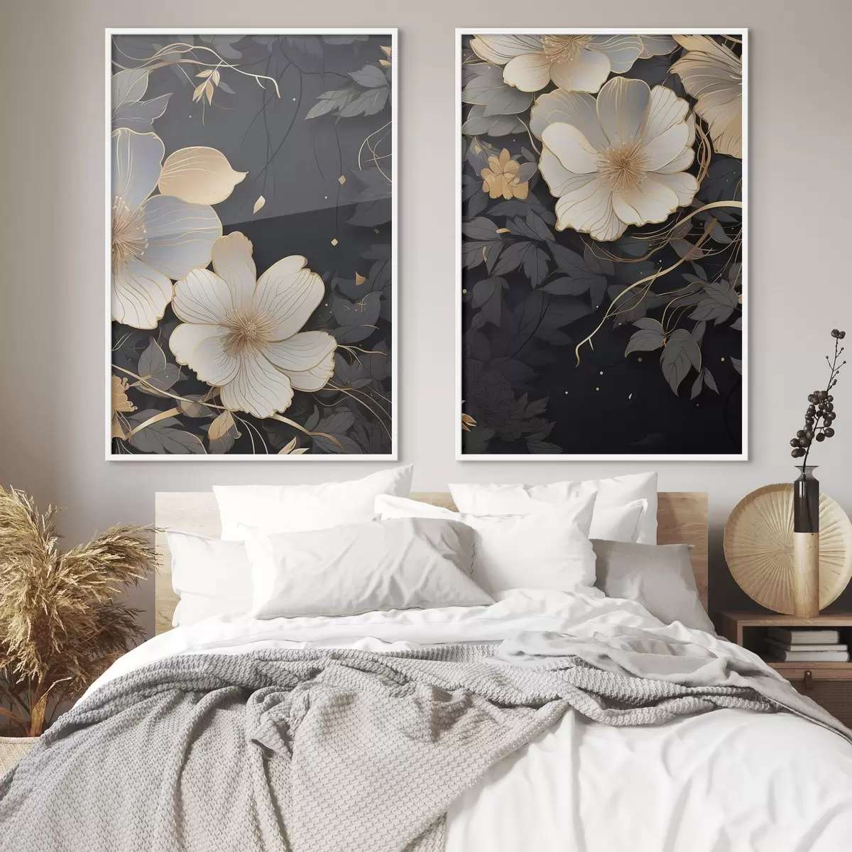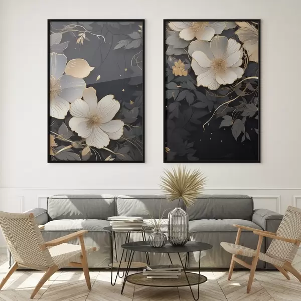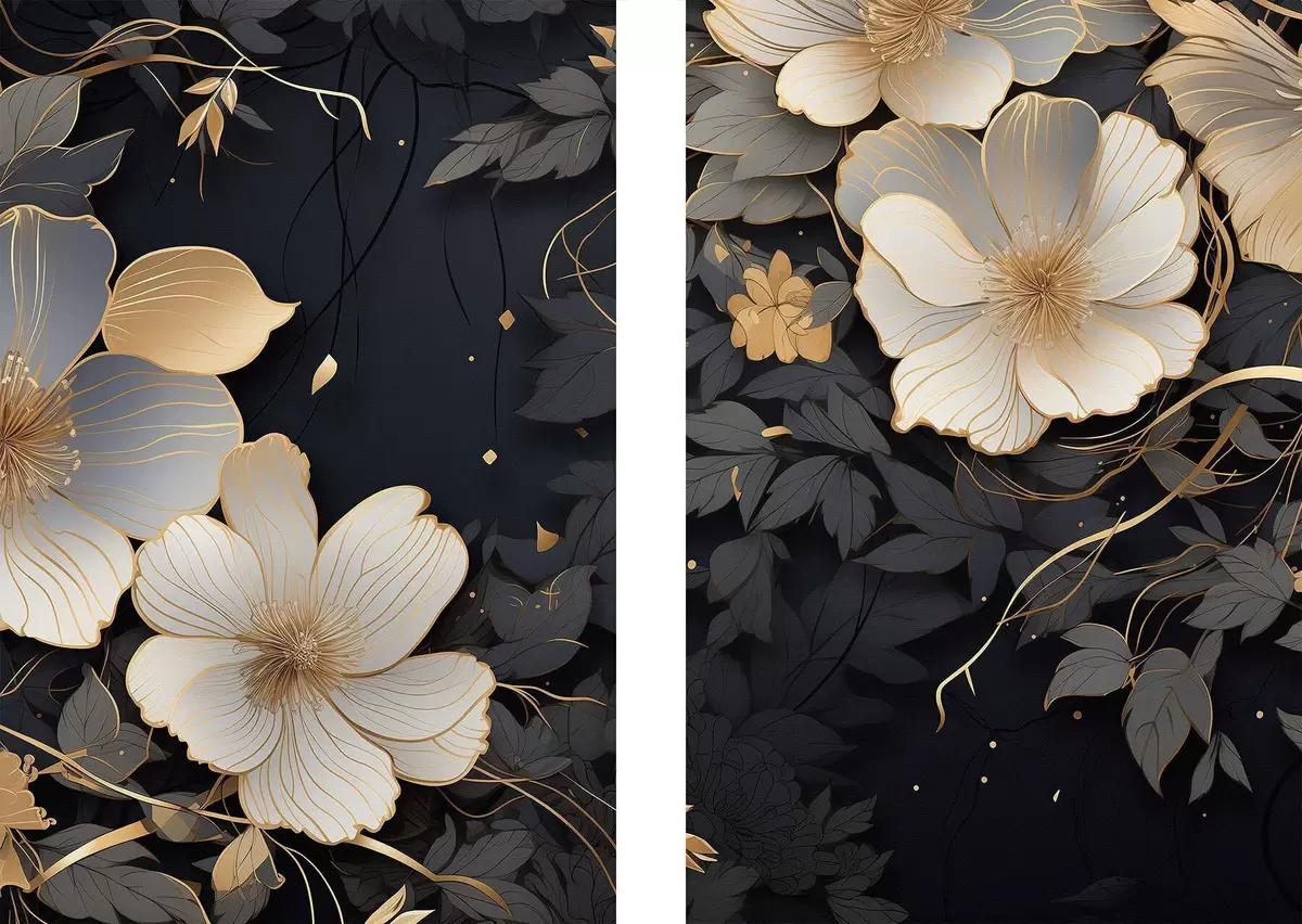 Poster Grote abstracte bloemen op een donkere achtergrond N° d01066