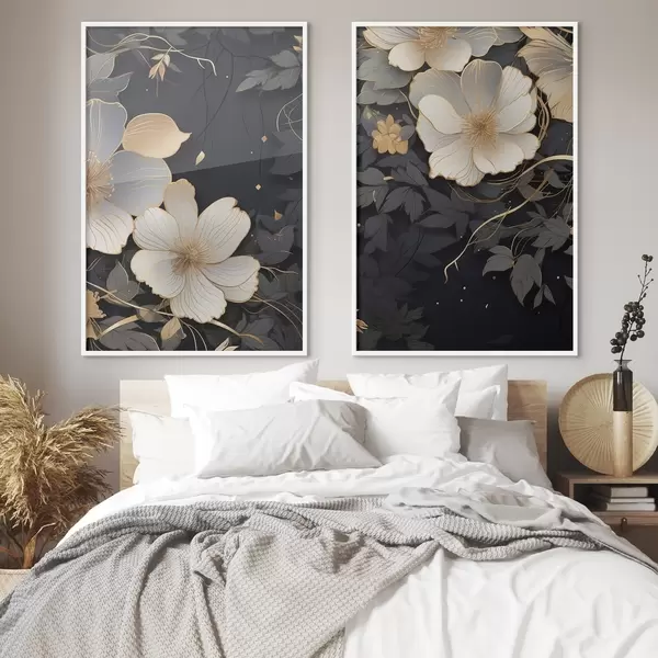 Poster Grote abstracte bloemen op een donkere achtergrond d01066