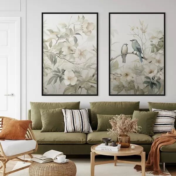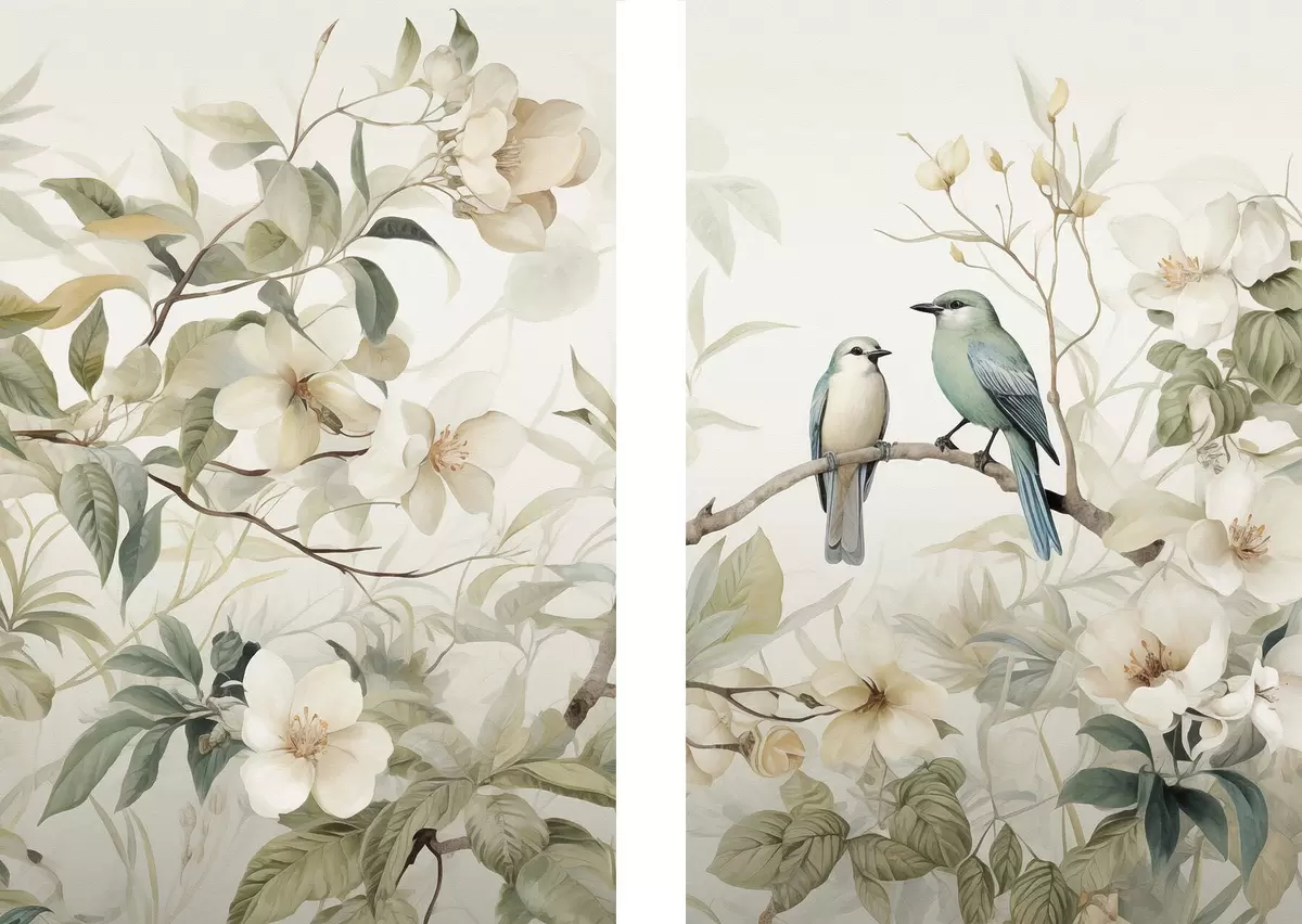 Poster Twee vogels op takken d01071