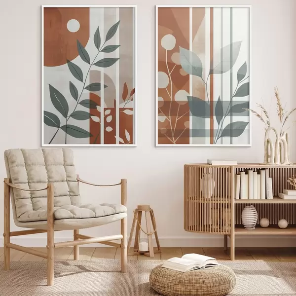 Poster Abstractie met takken en bladeren N° d01074