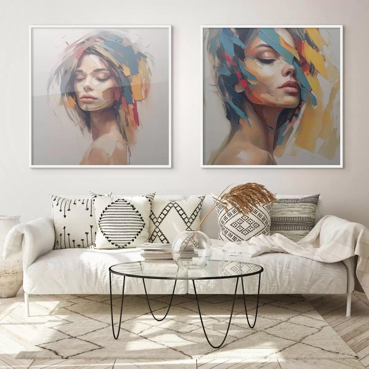 Je kunt het schilderij ophangen aan schroeven. Hiervoor leveren we bevestigingen bij onze foto's, zodat je de foto gemakkelijk kunt ophangen.