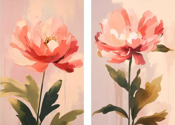 Poster Pastelkleurige pioenrozen op lange stelen in warme roze tinten d01093