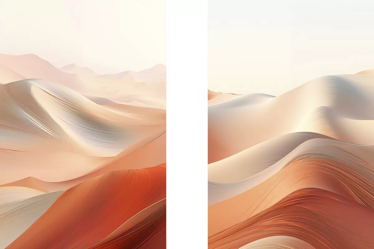 Poster Abstract woestijnlandschap met vloeiende zandduinen in warme oranje en witte tinten N° d01123
