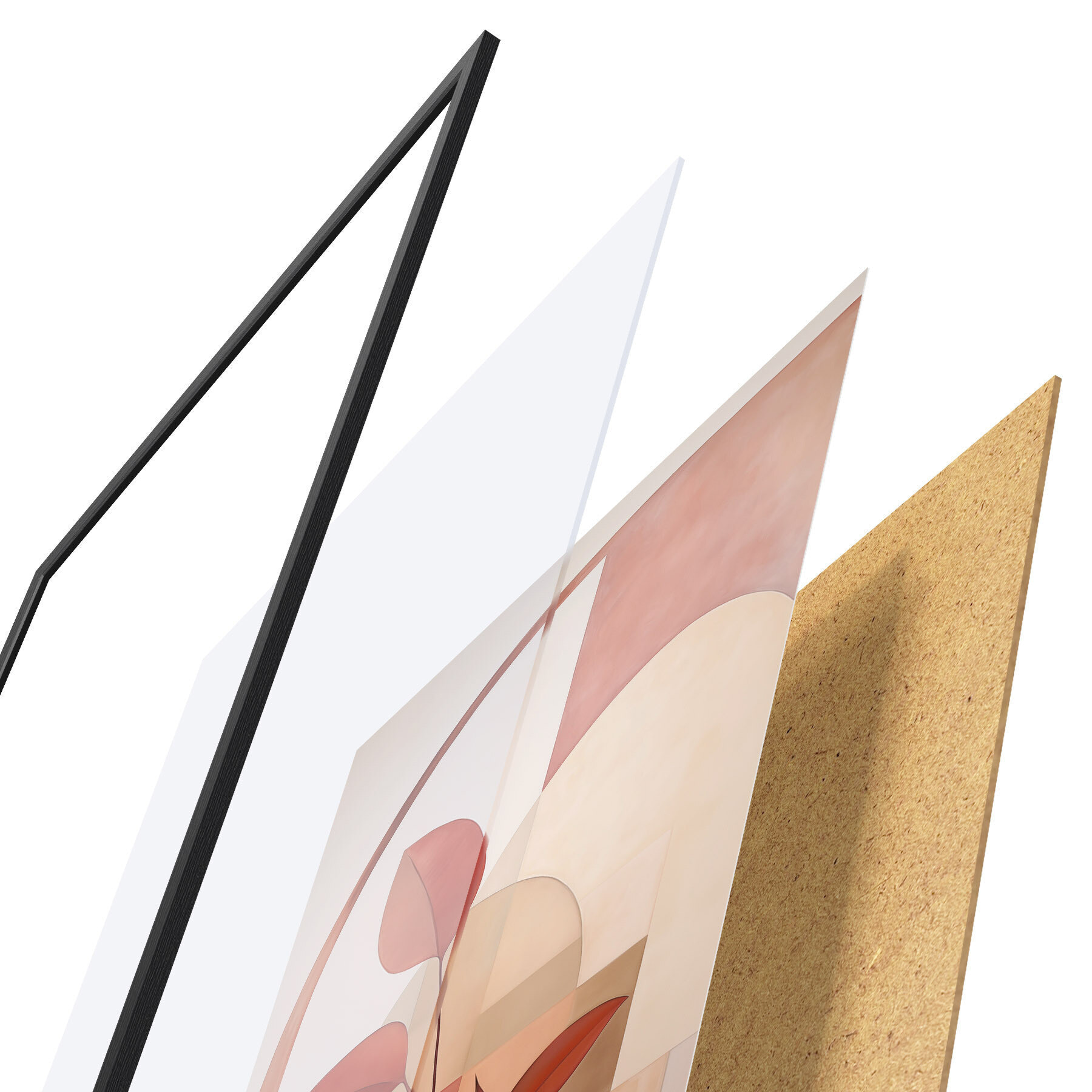De poster bestaat uit een frame, plexiglas, geprinte afbeelding en spaanplaat achterkant. De poster kan meteen aan de muur worden gehangen dankzij de bevestigingen op de achterkant.