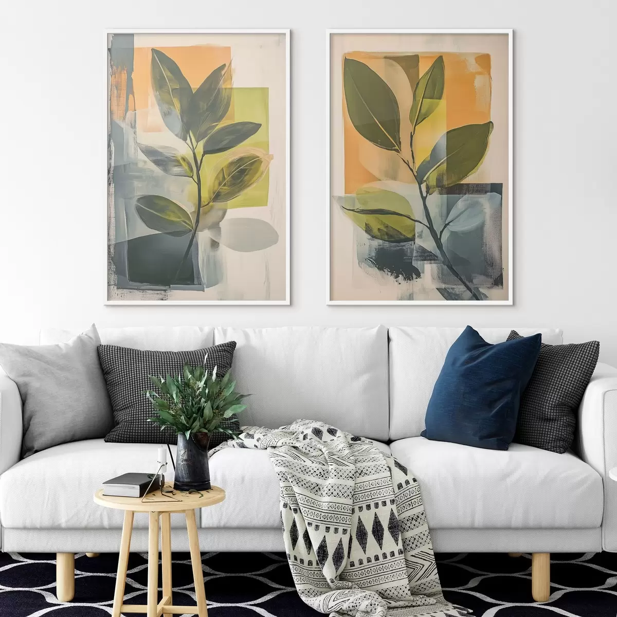 Poster Takken met bladeren op een abstracte achtergrond d01132