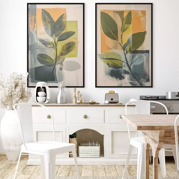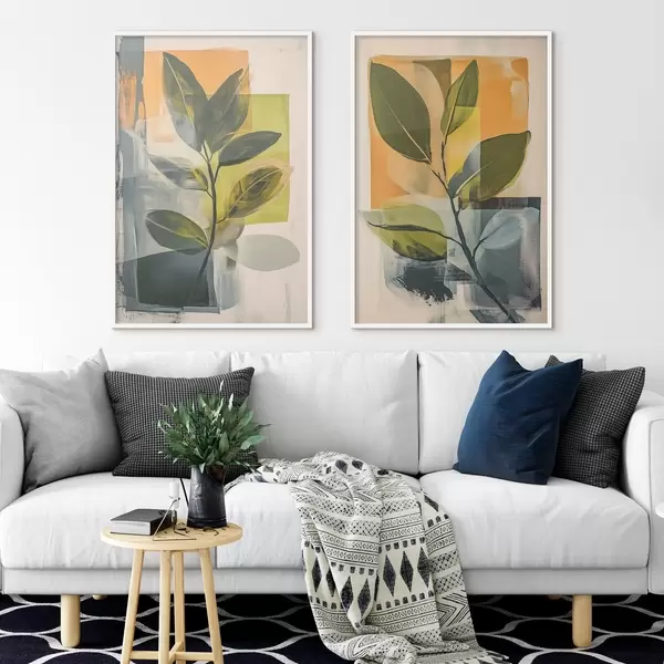Poster Takken met bladeren op een abstracte achtergrond N° d01132