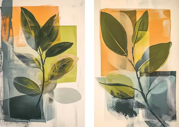 Poster Takken met bladeren op een abstracte achtergrond N° d01132