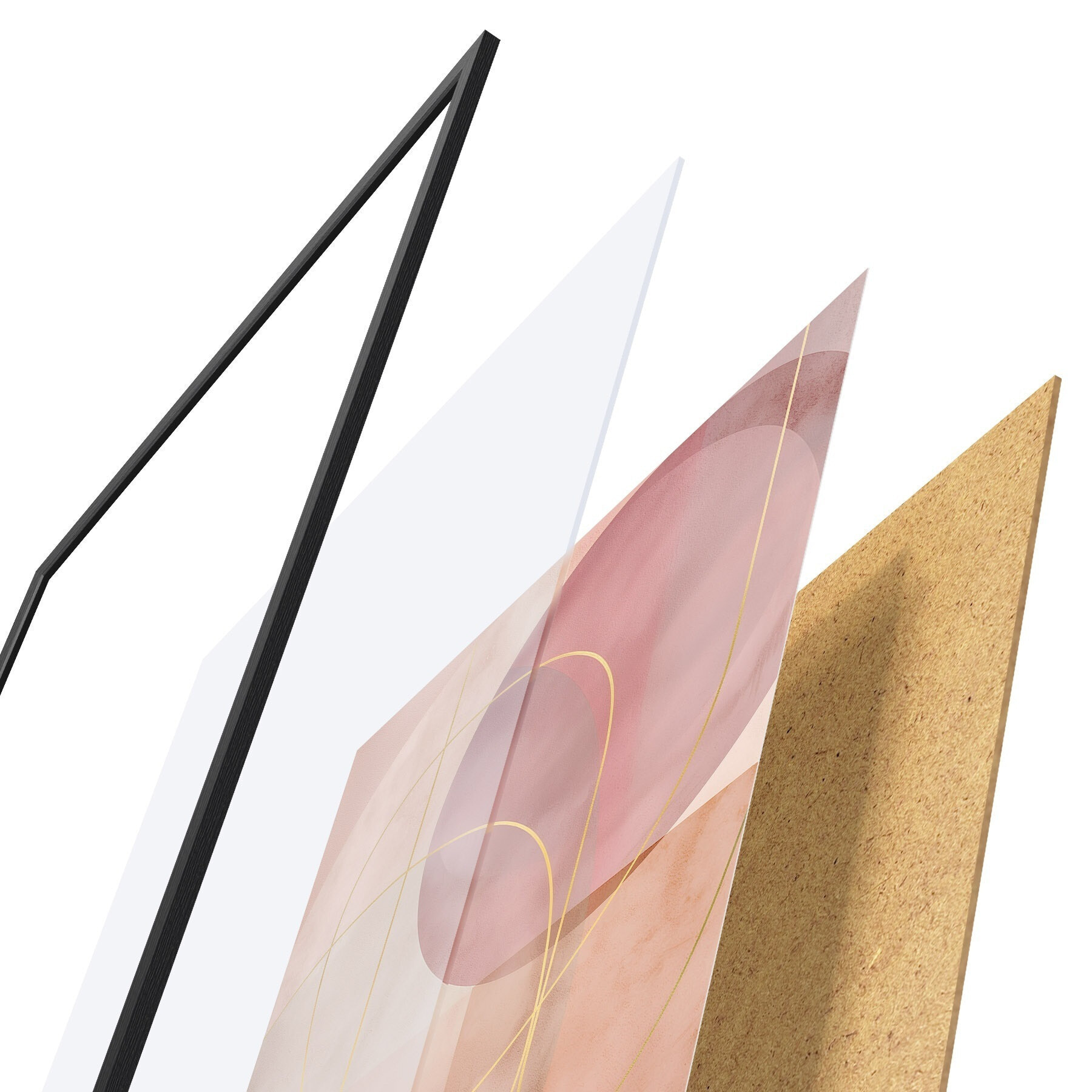 De poster bestaat uit een frame, plexiglas, geprinte afbeelding en spaanplaat achterkant. De poster kan meteen aan de muur worden gehangen dankzij de bevestigingen op de achterkant.