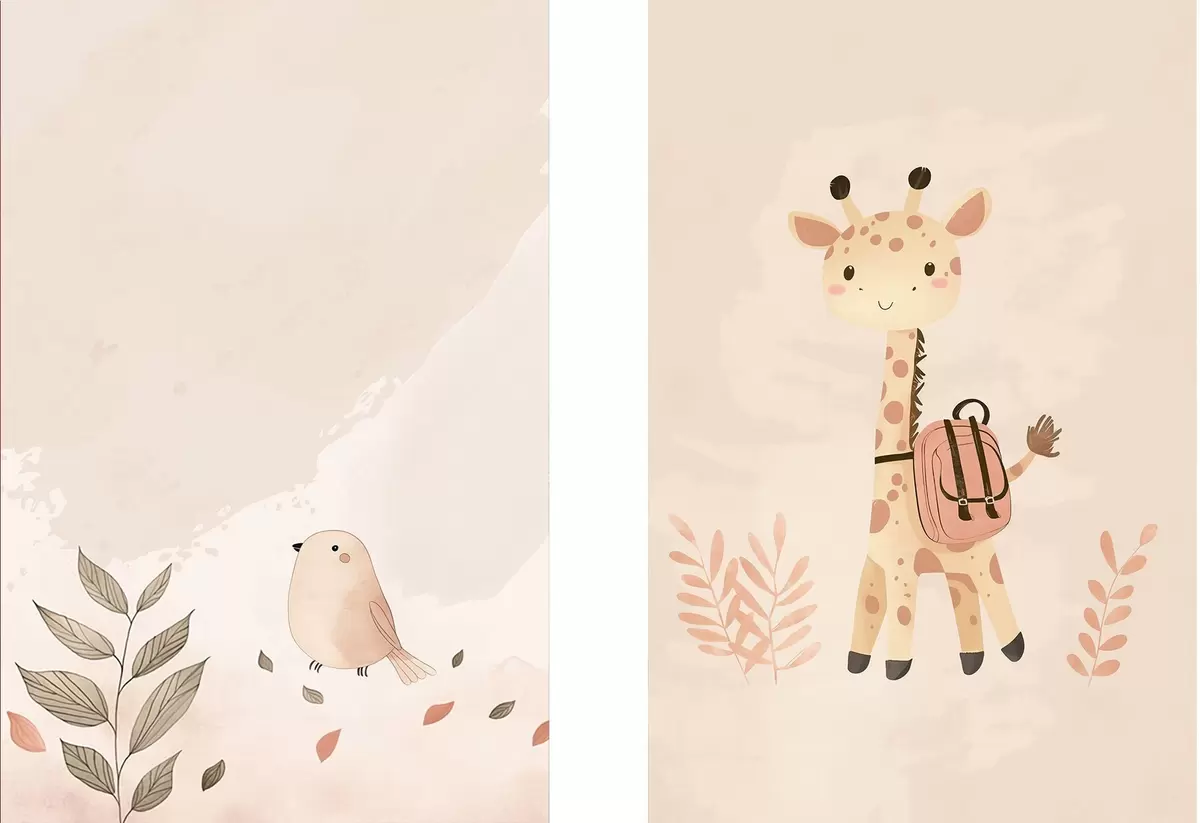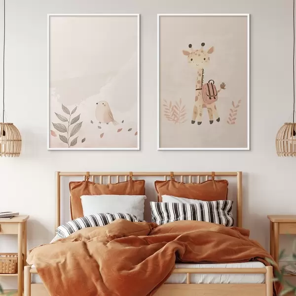 Poster Giraffe en vogel d01148