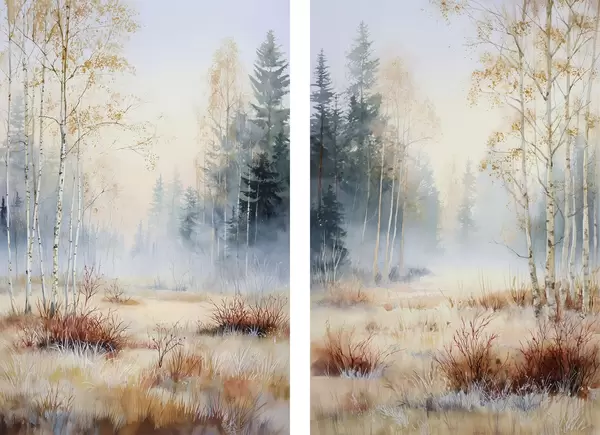 Poster landschap eerste vorst in het bos N° d01174