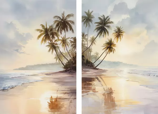 Poster zonsondergangstrand op een eiland in aquarelstijl N° d01177