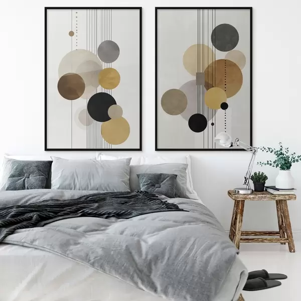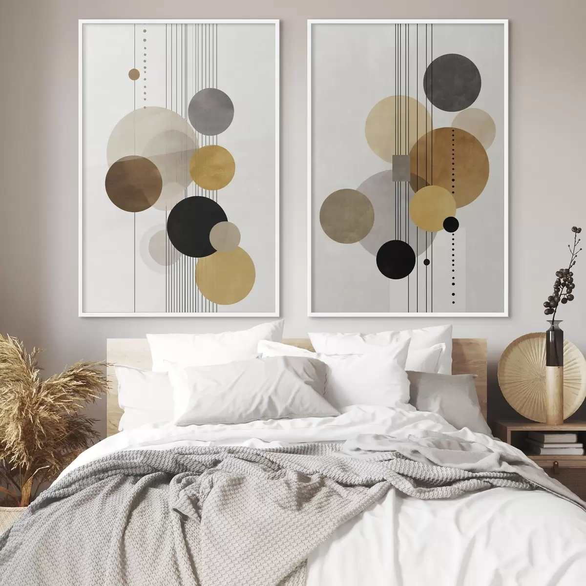 Poster abstractie met cirkels en lijnen in warme kleuren N° d01182