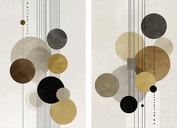 Poster abstractie met cirkels en lijnen in warme kleuren N° d01182