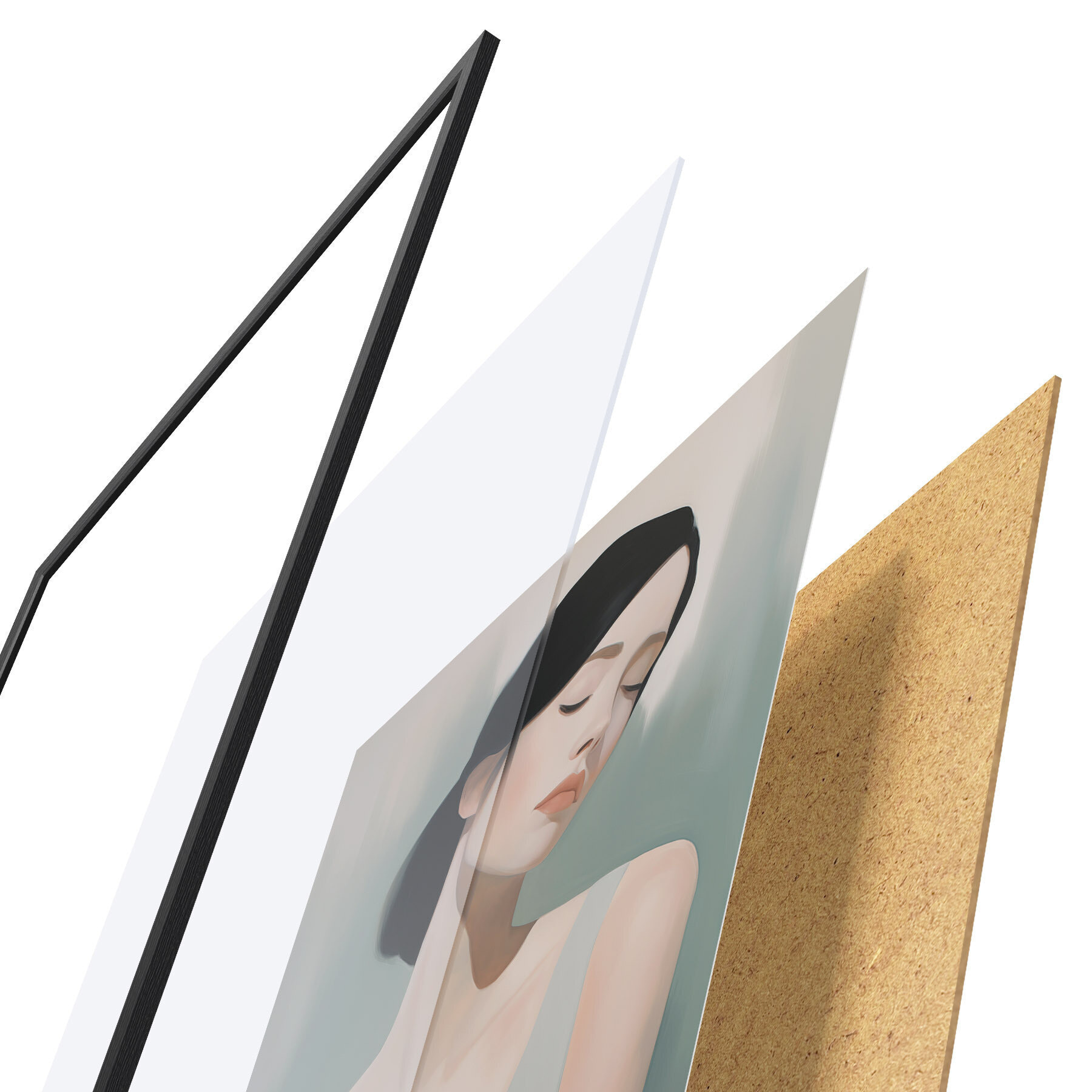 De poster bestaat uit een frame, plexiglas, geprinte afbeelding en spaanplaat achterkant. De poster kan meteen aan de muur worden gehangen dankzij de bevestigingen op de achterkant.