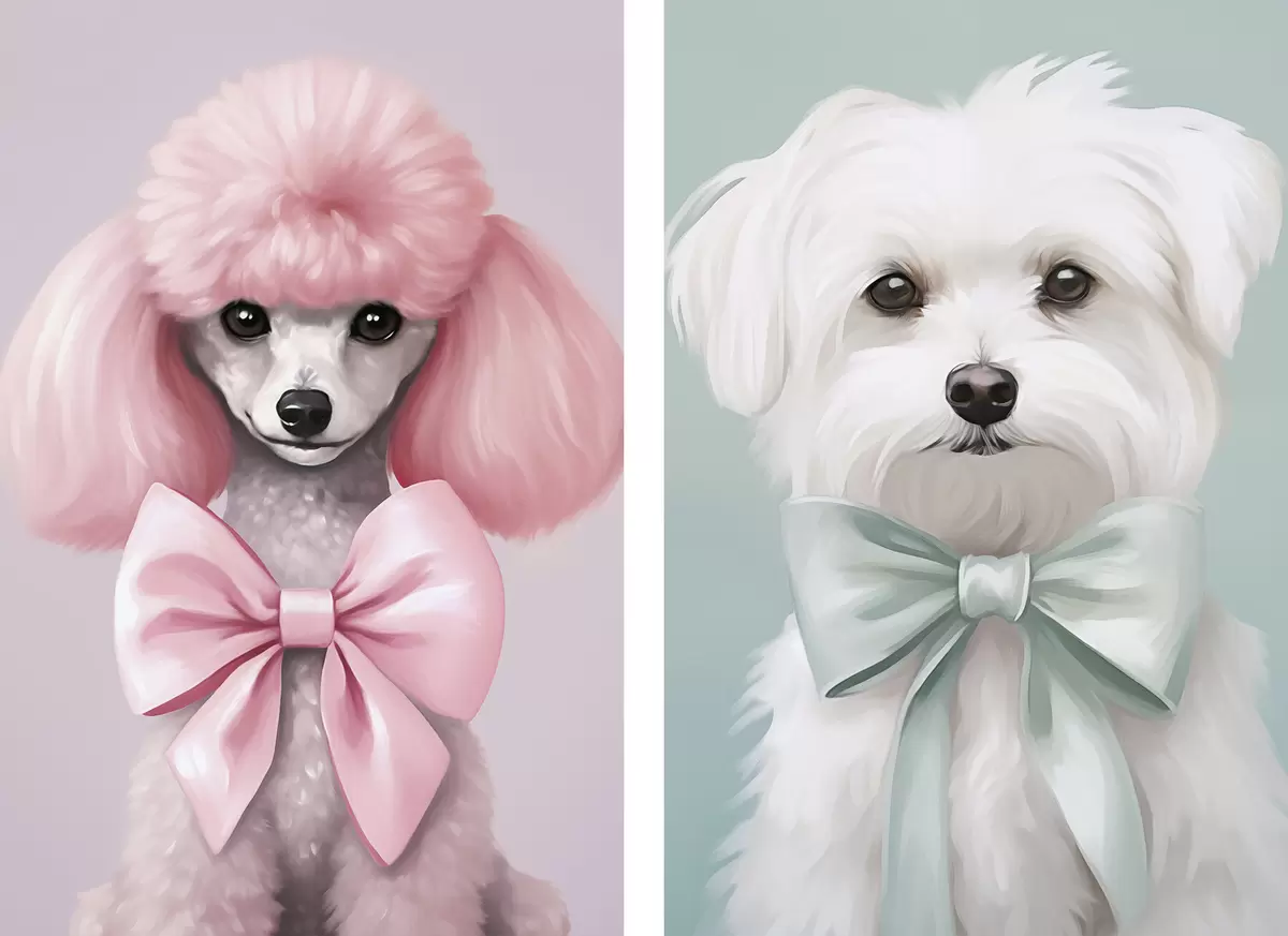 Poster Hond met een strik N° d01193