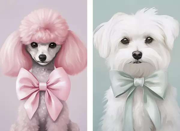 Poster Hond met een strik N° d01193