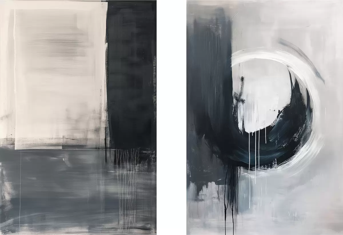 Poster Abstracte compositie in zwart-wittinten N° d01217