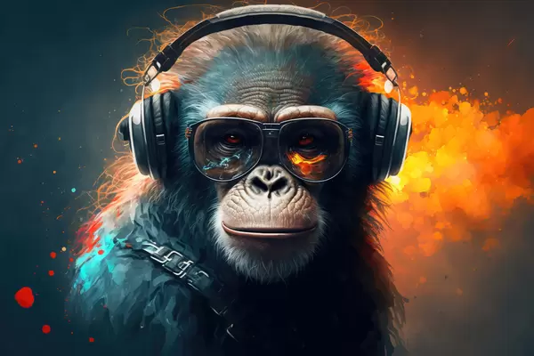 Poster Een geschilderde gorilla op een achtergrond van heldere abstractie. N° f34882