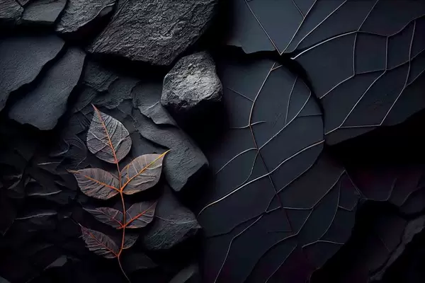 Poster Bladeren op gebarsten harde zwarte aarde f35706