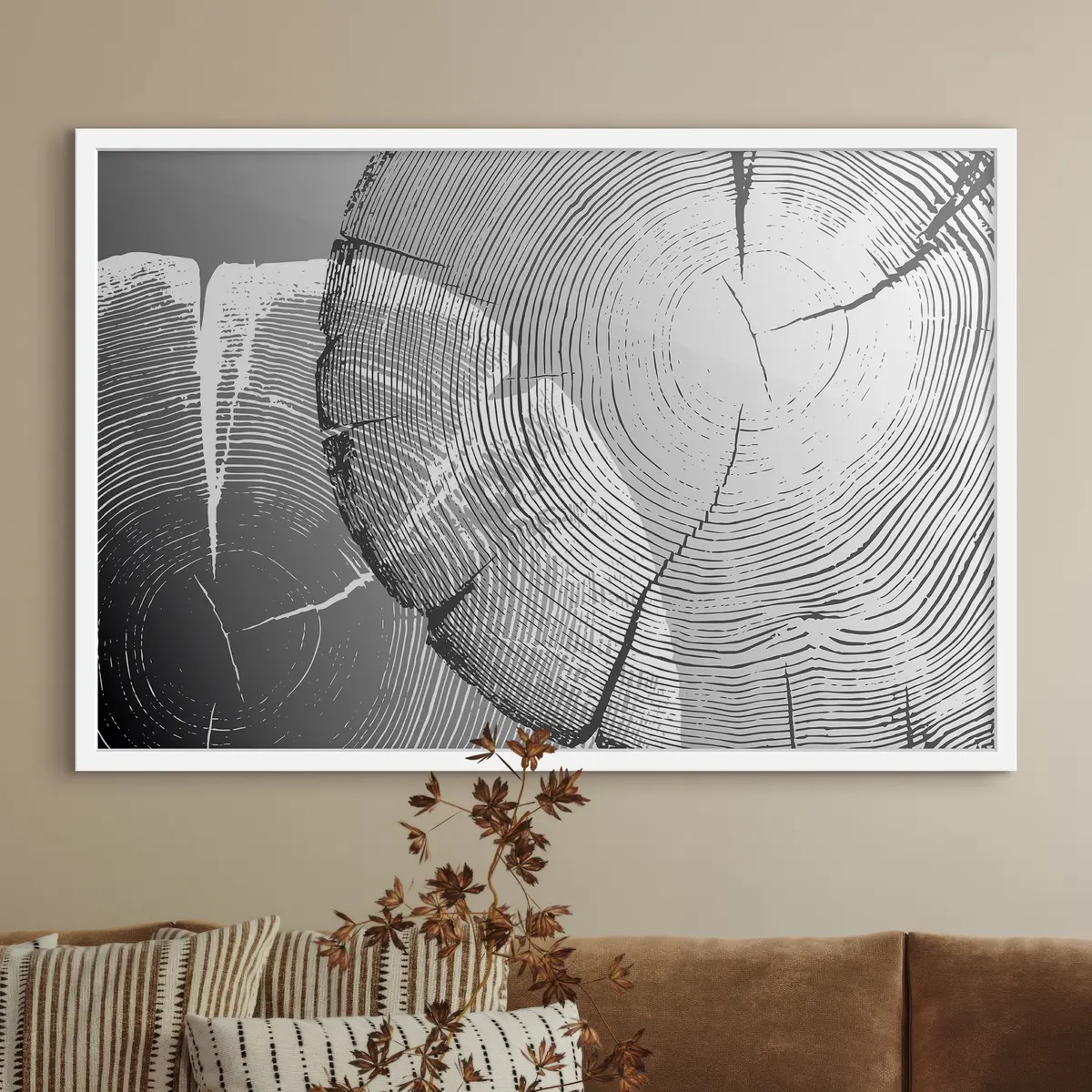 Poster Zwart-witte cirkels gesneden uit hout N° f35994