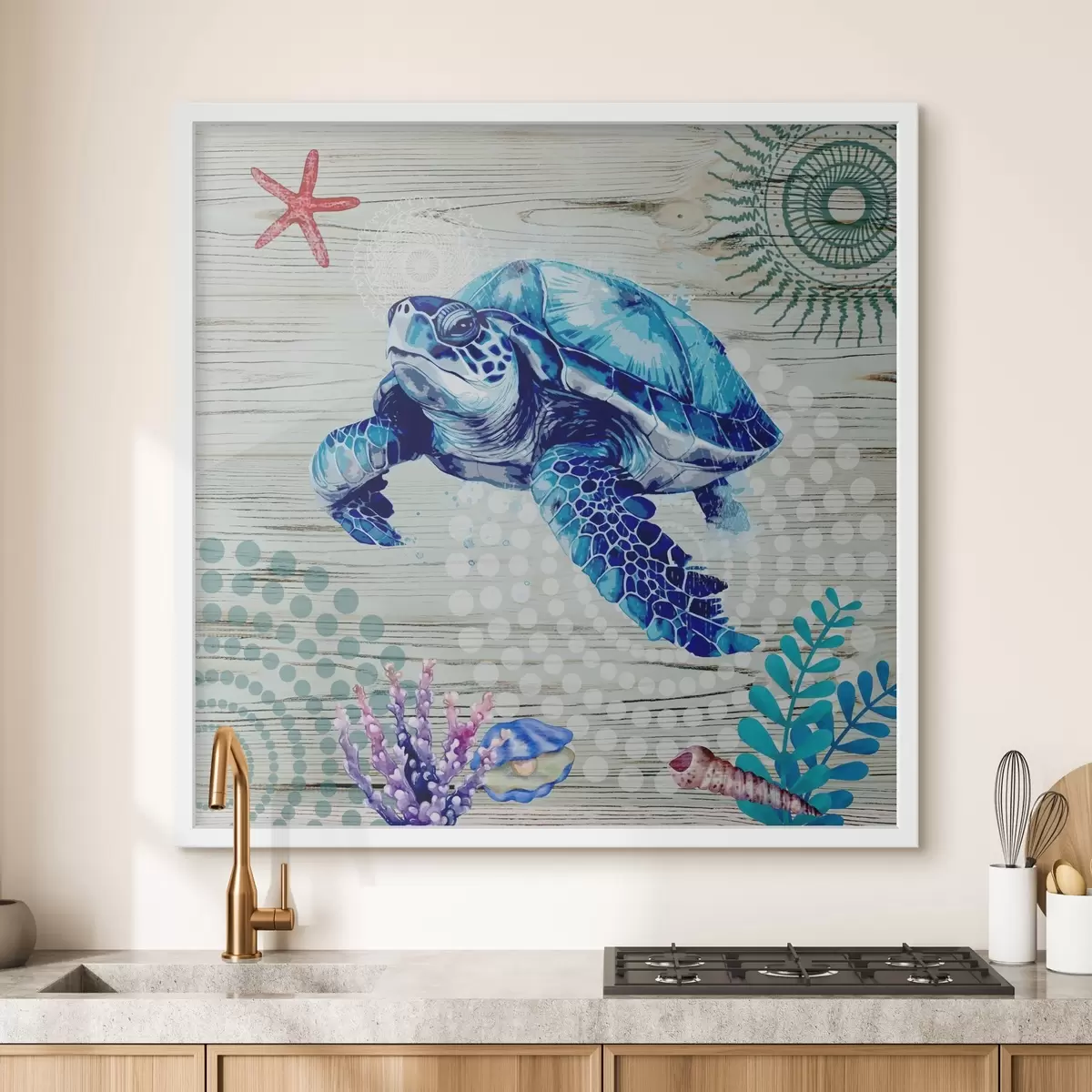 Poster Nautische abstractie met een schildpad N° f37239