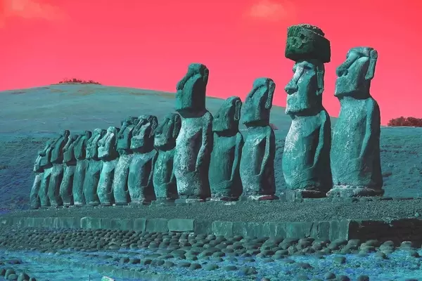 Poster Oude standbeelden onder een surrealistische hemel f37288