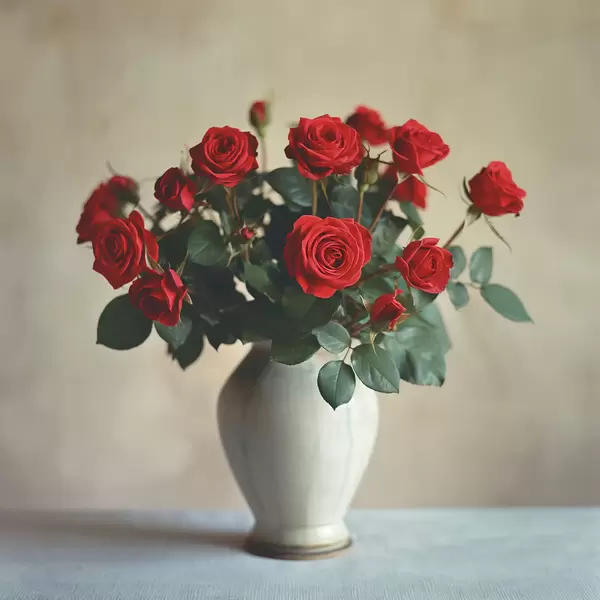 Poster Vaas met rode rozen N° f37377